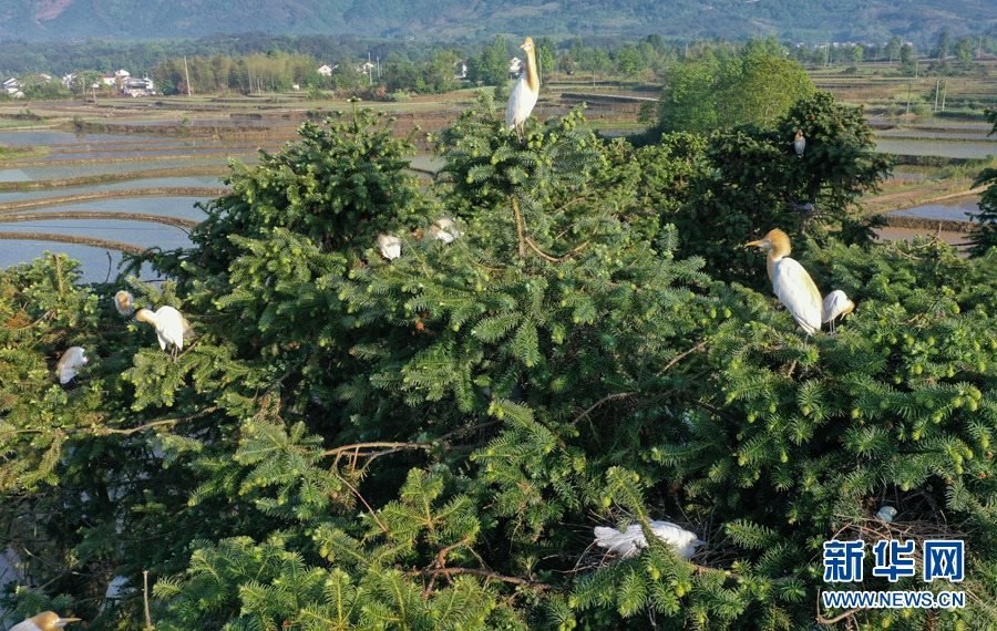 航拍安徽省宣城市旌德縣興隆鎮(zhèn)三山村,良好的生態(tài)環(huán)境吸引眾多鳥類在這里安家落戶。新華網發(fā)(江建興 攝)
