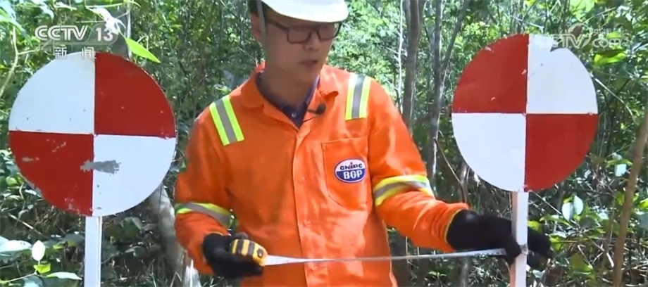 在勘探過(guò)程中,工作人員會(huì)用不同顏色的飄帶進(jìn)行標(biāo)記,這種紅色的飄帶是代表保護(hù)樹(shù)種,禁止砍伐,藍(lán)色飄帶則指示著項(xiàng)目的路線。這些飄帶全都是用可降解材料制成的,在勘探任務(wù)結(jié)束后,還會(huì)有專門的小組對(duì)工區(qū)進(jìn)行垃圾回收和雨林恢復(fù)工作。目前,項(xiàng)目已經(jīng)完成了70%的工作量,預(yù)計(jì)7月中旬可以順利竣工。一年多來(lái),項(xiàng)目多次接受當(dāng)?shù)丨h(huán)保等部門的各項(xiàng)檢查,每一次審計(jì)和檢測(cè)都收到了相關(guān)方非常高的評(píng)價(jià)。