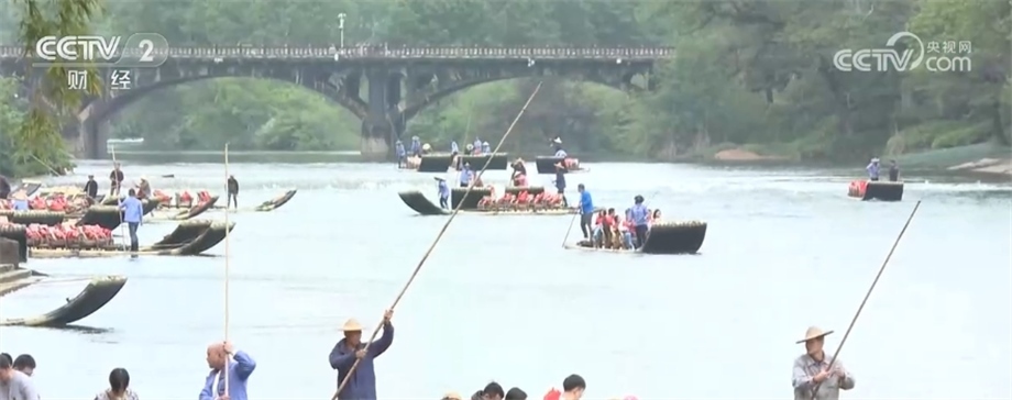 總臺(tái)記者 劉夢(mèng)齡:我現(xiàn)在所在的位置是福建武夷山景區(qū)的九曲溪竹筏碼頭?!拔逡弧奔倨诘牡诙欤湟纳骄皡^(qū)迎來了客流的最高峰,九曲溪竹筏漂流是景區(qū)里最熱門的旅游項(xiàng)目之一,為了更好服務(wù)游客,景區(qū)每天開行竹筏漂流12趟,最多能滿足8000名游客的需求。