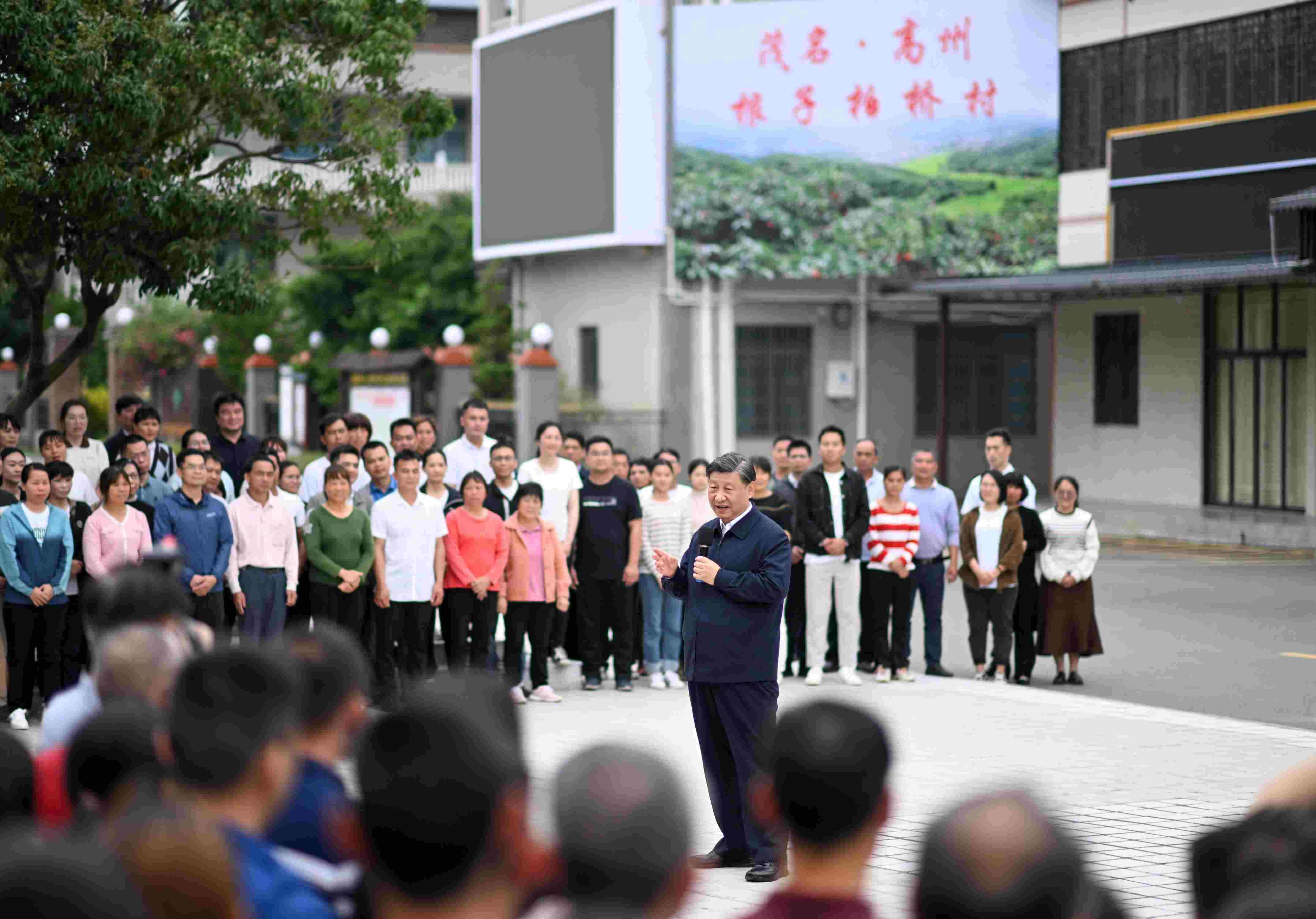 △4月11日,習(xí)近平總書記在廣東茂名高州市根子鎮(zhèn)柏橋村同村民親切交流。
