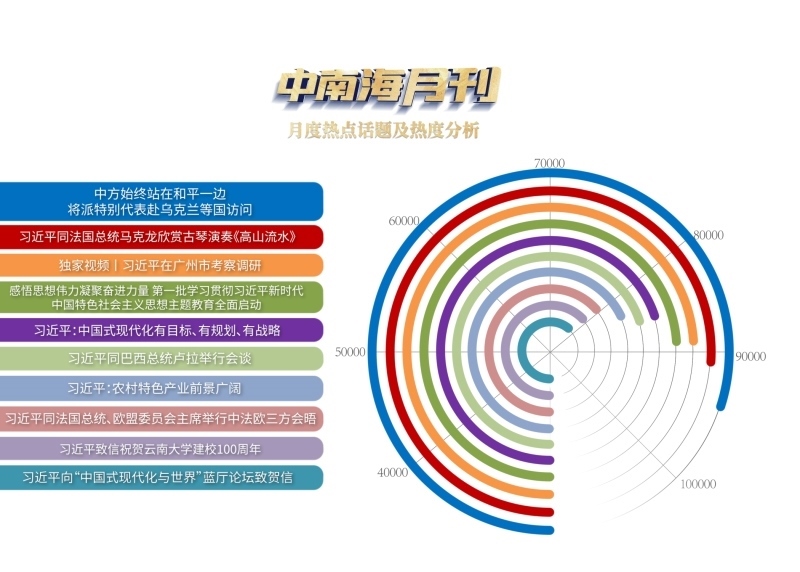 央視網(wǎng)“智聞”系統(tǒng)提取分析4月全網(wǎng)時(shí)政新聞熱點(diǎn)顯示,“中方始終站在和平一邊,將派特別代表赴烏克蘭等國訪問”“中法元首非正式會(huì)晤”“習(xí)近平在廣州市考察調(diào)研”等話題備受關(guān)注。