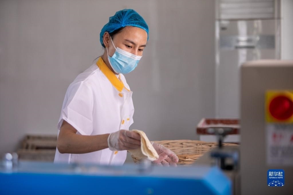 4月30日,在淄博市高青縣田鎮(zhèn)街道一家食品加工企業(yè),工作人員在趕制小餅訂單。