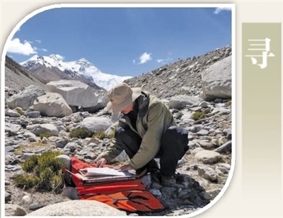 中國科學院昆明植物研究所中國西南野生生物種質資源庫采集員在珠峰大本營采集種子標本。蔡 杰攝(人民視覺)