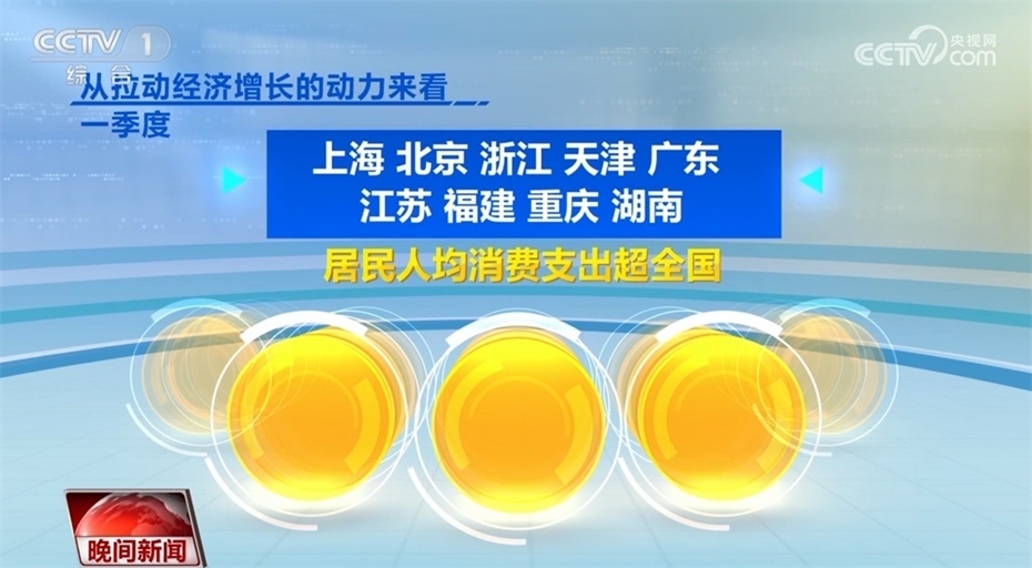 此外,各地經(jīng)濟(jì)發(fā)展也呈現(xiàn)回升向好態(tài)勢(shì)。目前,全國31個(gè)?。▍^(qū)、市),已經(jīng)全部公布一季度的經(jīng)濟(jì)運(yùn)行數(shù)據(jù)。從GDP增速來看,31個(gè)省(區(qū)、市)中有23個(gè)省份跑贏全國一季度GDP平均增速4.5%,從地區(qū)GDP總量看,有12個(gè)省份超1萬億,廣東超過了3萬億。從拉動(dòng)經(jīng)濟(jì)增長(zhǎng)的動(dòng)力來看,一季度,上海、北京、浙江、天津、廣東、江蘇、福建、重慶、湖南9省份,居民人均消費(fèi)支出超全國。