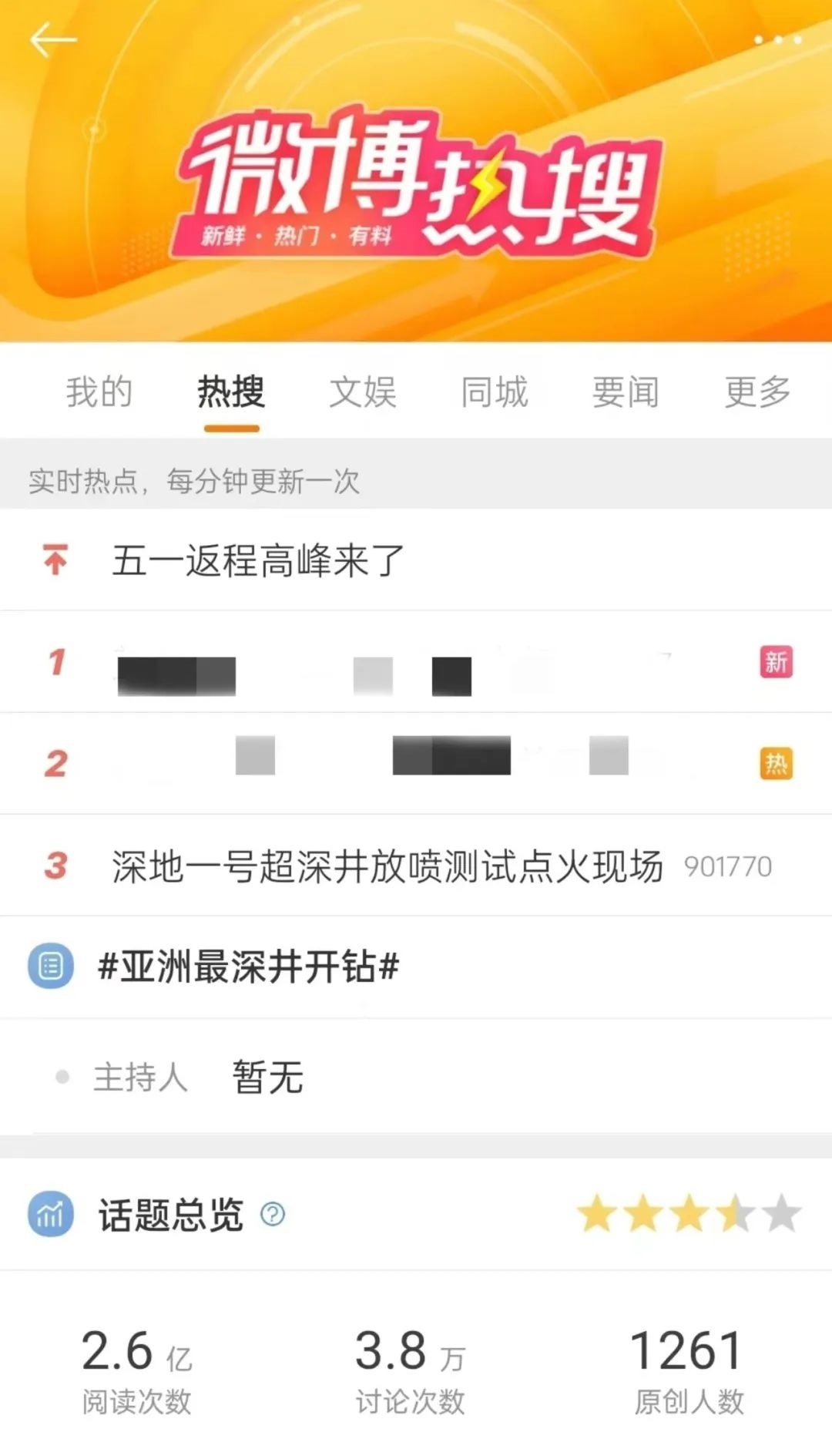直播期間,#亞洲最深井開鉆#的微博話題閱讀量達2.6億次,#亞洲最深井在塔里木盆地開鉆施工##深地一號超深井放噴測試點火現(xiàn)場#等話題連續(xù)沖上微博、快手等熱搜,“勞動的畫面每一幀都比電影震撼”短視頻被全網置頂推薦……網友紛紛表示:“奮斗創(chuàng)造奇跡”“了不起的大國重器”......為中國工程點贊。