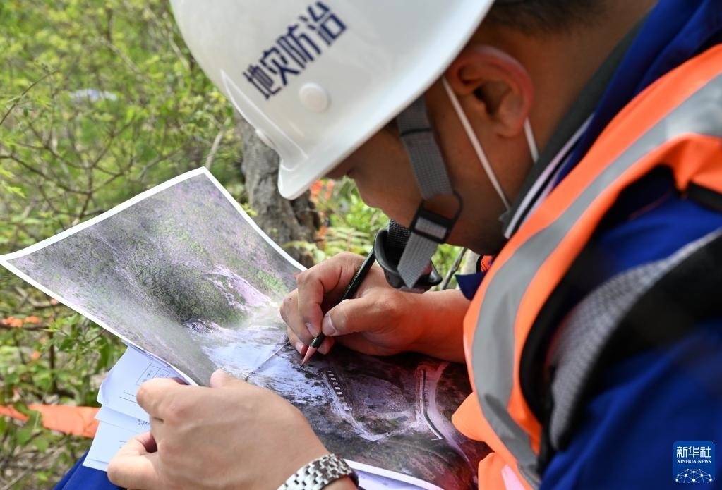 5月9日,在偏橋子滑坡地質災害隱患點,參賽選手標記滑坡體信息。