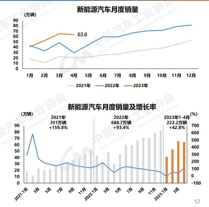 中新網(wǎng)5月11日電 (中新財(cái)經(jīng) 葛成)11日,中汽協(xié)發(fā)布汽車(chē)產(chǎn)銷(xiāo)數(shù)據(jù)。2023年4月,汽車(chē)產(chǎn)銷(xiāo)分別完成213.3萬(wàn)輛和215.9萬(wàn)輛,同比分別增長(zhǎng)76.8%和82.7%;新能源汽車(chē)產(chǎn)銷(xiāo)分別完成64萬(wàn)輛和63.6萬(wàn)輛,同比均增長(zhǎng)1.1倍;汽車(chē)企業(yè)出口37.6萬(wàn)輛,同比增長(zhǎng)1.7倍。