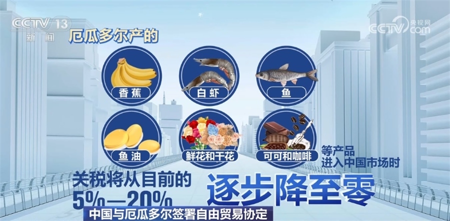 中國與厄瓜多爾簽署自由貿(mào)易協(xié)定:中厄雙方將對(duì)90%的稅目相互取消關(guān)稅