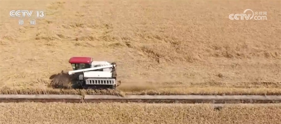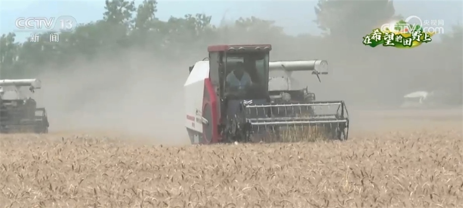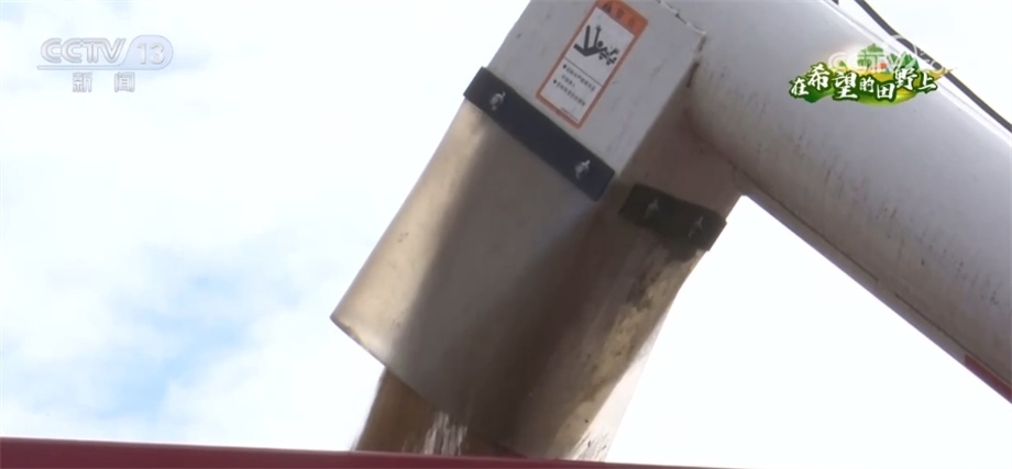 總臺(tái)記者 趙雄:歡迎大家跟隨我們的鏡頭一起走進(jìn)成都平原,來感受豐收的喜悅。我現(xiàn)在所在的位置是四川邛崍市的萬畝糧油示范基地。在我身后,200多畝成片的小麥已經(jīng)成熟,放眼望去,金黃的麥穗在風(fēng)中搖曳,麥浪翻滾煞是喜人。在麥田上,我們可以看到多臺(tái)大型收割機(jī)來回穿梭作業(yè),一簇簇麥穗被卷入收割機(jī)倉(cāng),收割、脫粒、除雜一氣呵成,金色麥粒傾瀉入倉(cāng)。