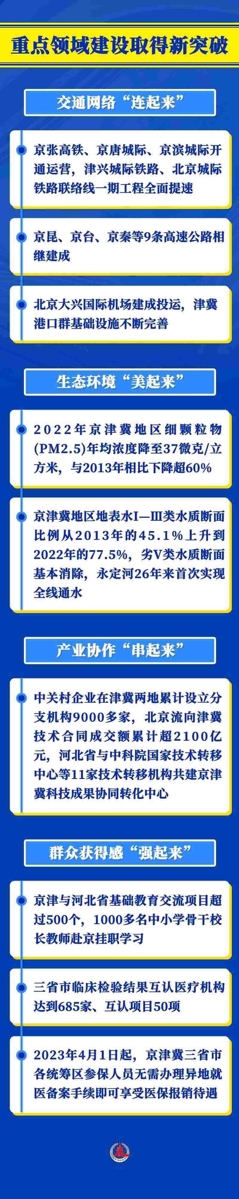 京津冀協(xié)同發(fā)展是一個系統(tǒng)工程。9年多來,三地攜手發(fā)力,重點區(qū)域協(xié)同發(fā)展步穩(wěn)蹄疾,交通、環(huán)境、產(chǎn)業(yè)、公共服務(wù)等重點領(lǐng)域建設(shè)不斷取得新突破。