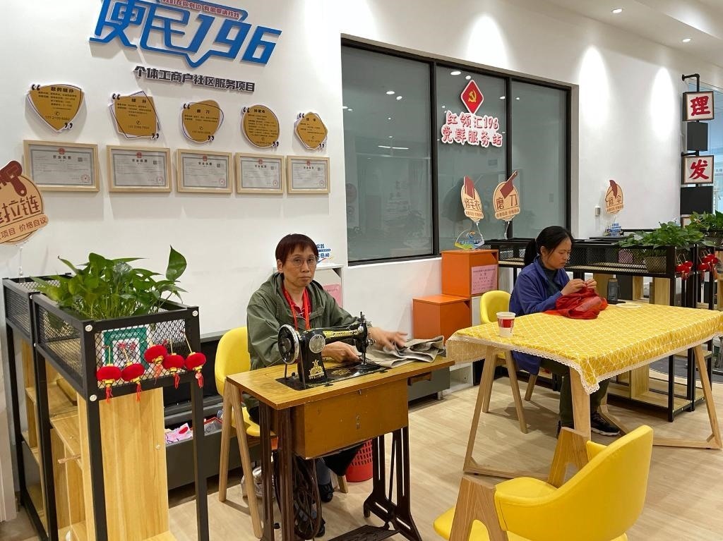 因手藝好、做活快、價格低廉,來自安徽的何阿姨在松江做毛衣修補已有20個年頭。由于租不起門面,長久以來她只能在菜場門口支個小攤,刮風(fēng)下雨也沒個遮擋。前不久,當(dāng)?shù)厥袌霰O(jiān)管部門的工作人員主動聯(lián)系何阿姨,依托紅領(lǐng)匯196黨群服務(wù)站為經(jīng)營場所,為她辦理了營業(yè)執(zhí)照,還提供了干凈明亮的獨立經(jīng)營空間。