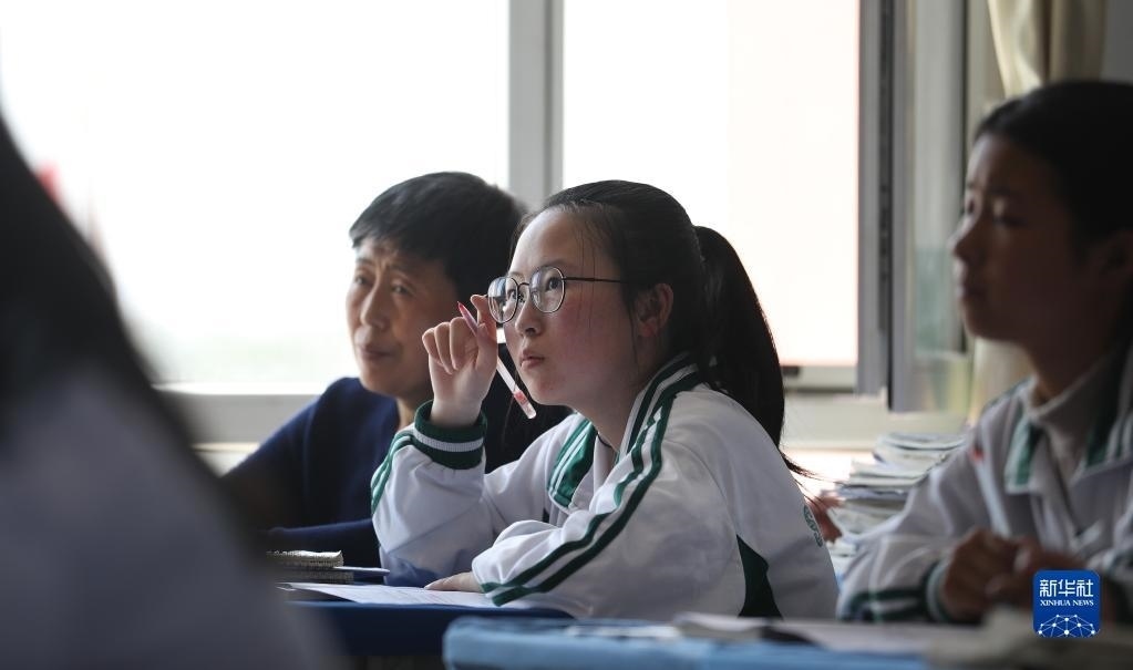 張連琴和女兒李昕偉在教室內(nèi)聽課(5月8日攝)。
