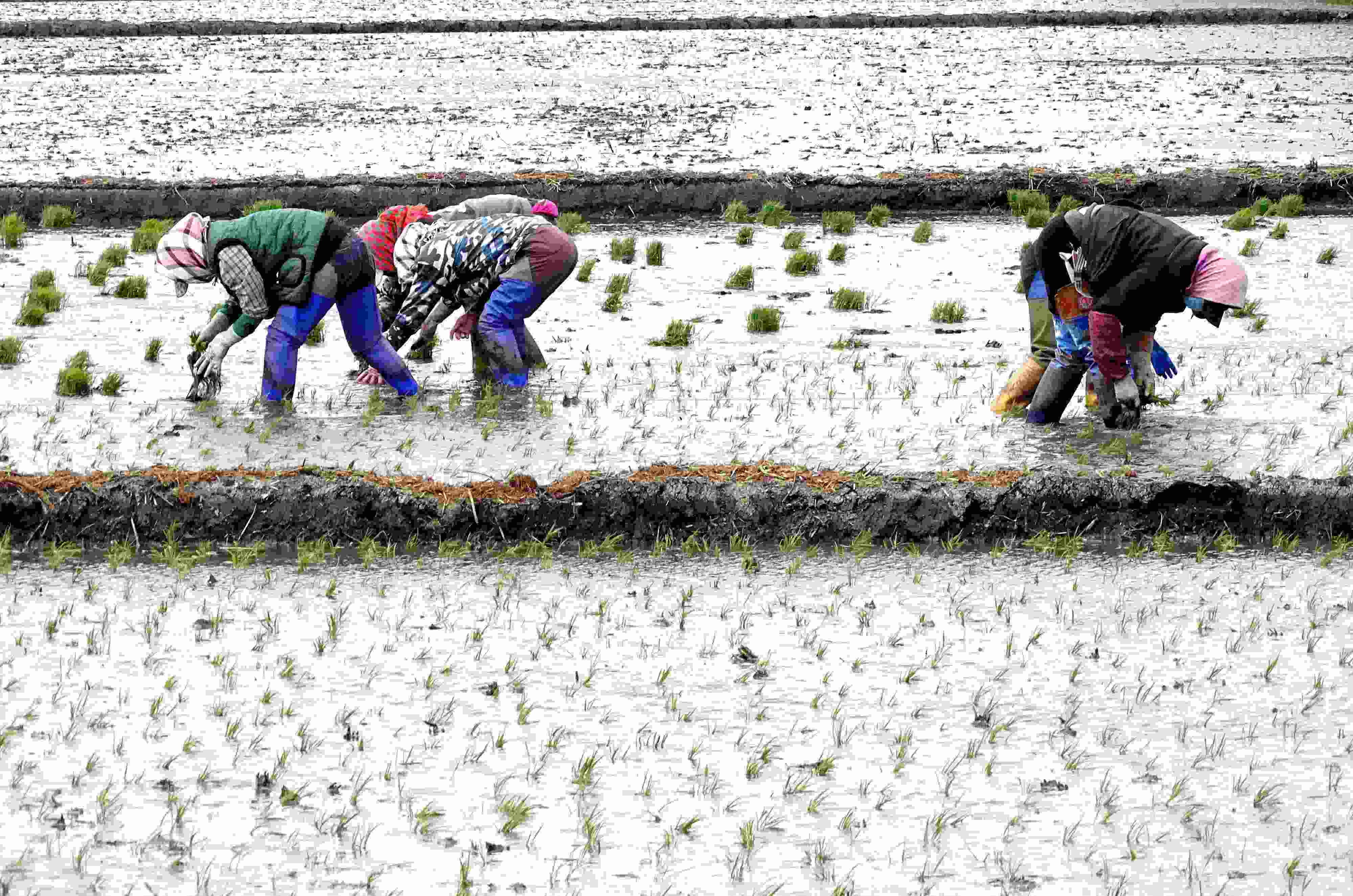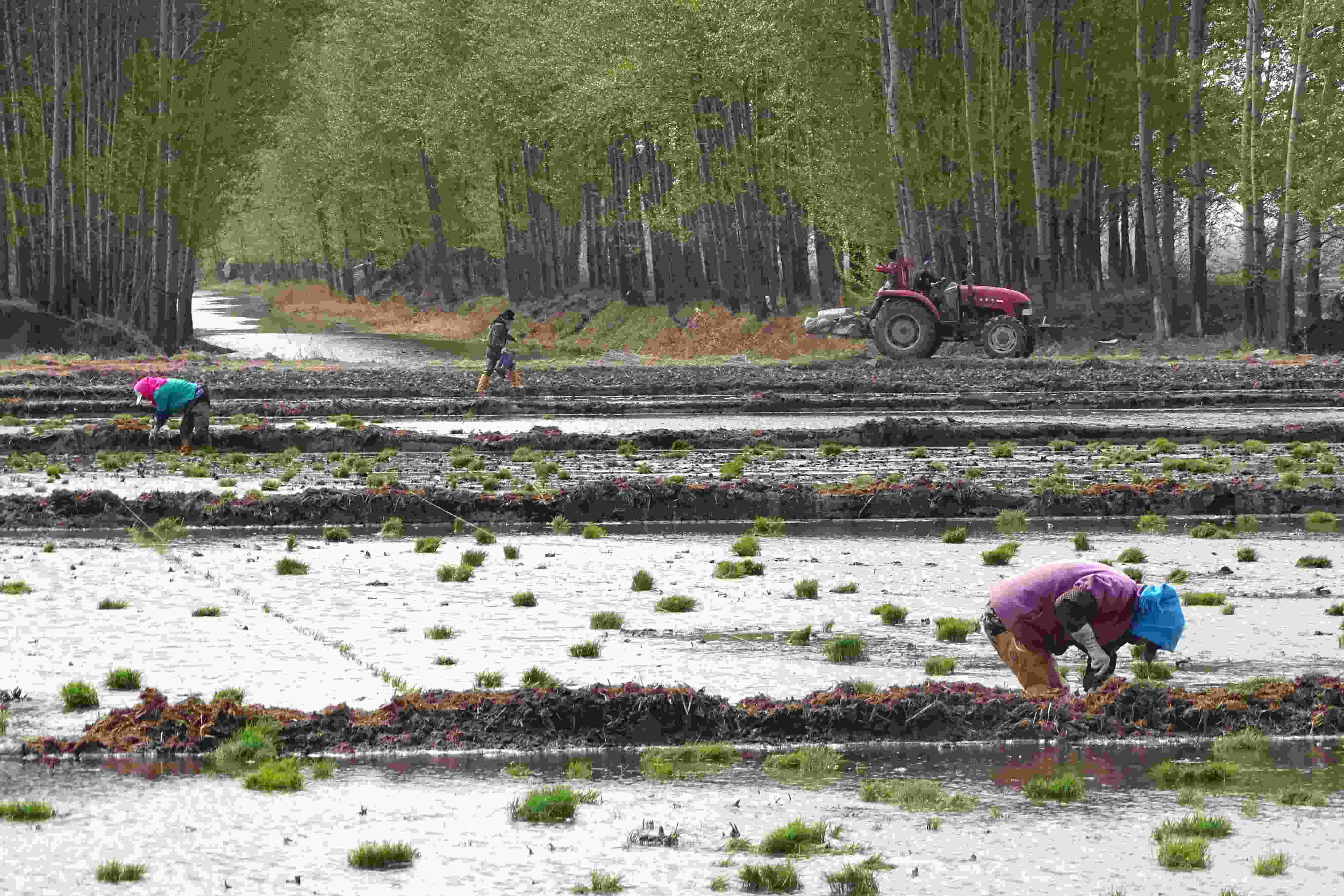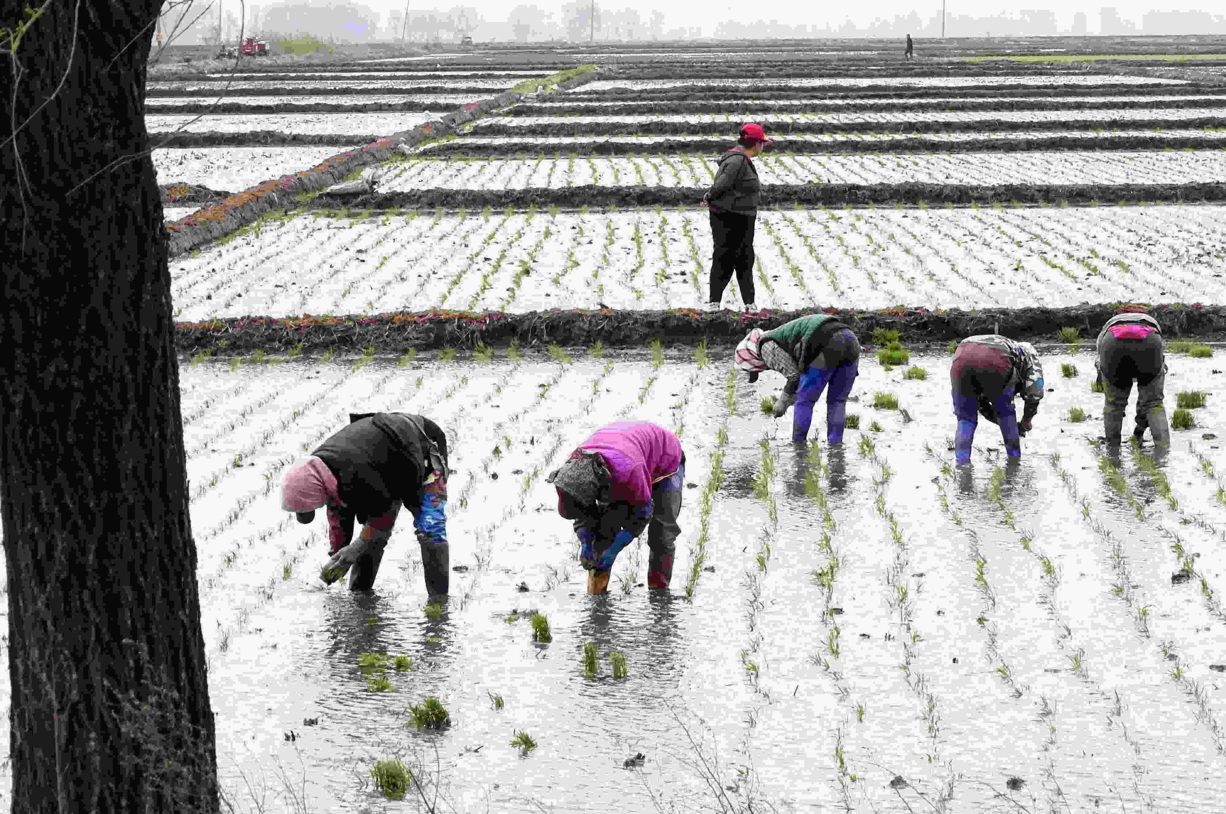 五月中旬,黑龍江省五常市,當(dāng)?shù)剞r(nóng)戶搶抓農(nóng)時開展夏季插秧大生產(chǎn),田間地頭一派繁忙景象。 (吳胡荼 攝)
