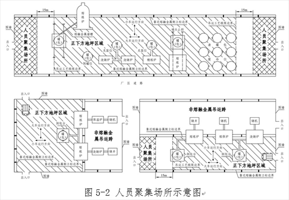(一)會議室、活動室、休息室、操作室、交接班室、更衣室(含澡堂)等6類人員聚集場所設(shè)置在熔融金屬吊運跨的地坪區(qū)域內(nèi)的。