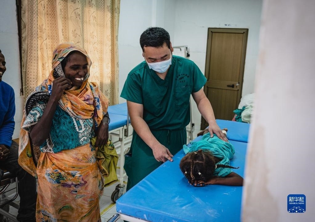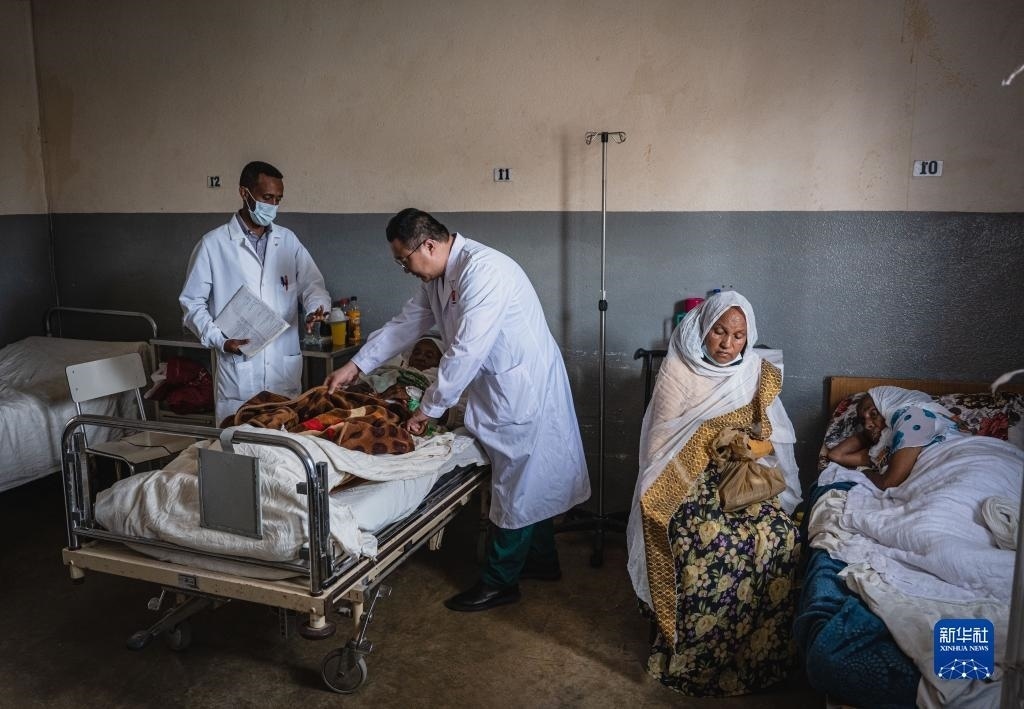 5月9日,在厄立特里亞首都阿斯馬拉的奧羅特醫(yī)院,醫(yī)療隊(duì)神經(jīng)外科醫(yī)生喬松鶴(中)為患者診療。