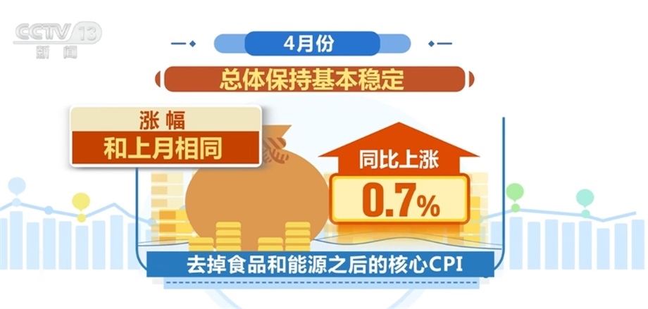 從去掉食品和能源之后的核心CPI看,4月份同比上漲0.7%,漲幅和上月相同,總體保持基本穩(wěn)定。