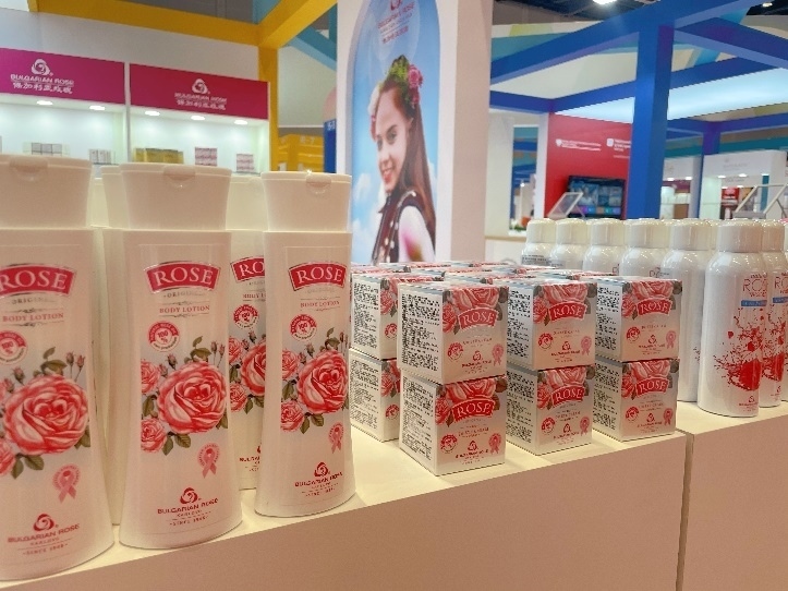 博覽會(huì)現(xiàn)場(chǎng)展示的保加利亞知名玫瑰洗護(hù)產(chǎn)品