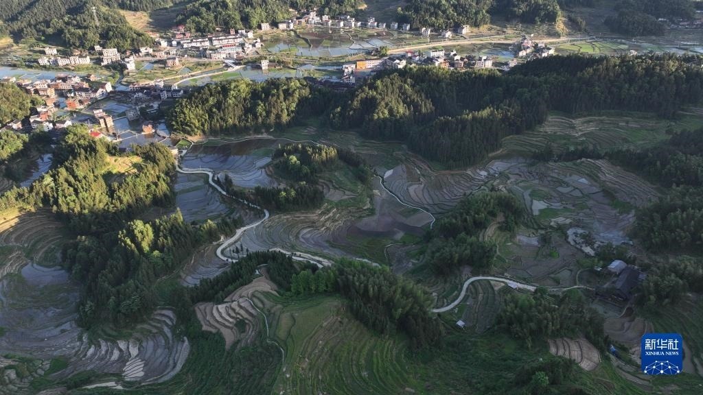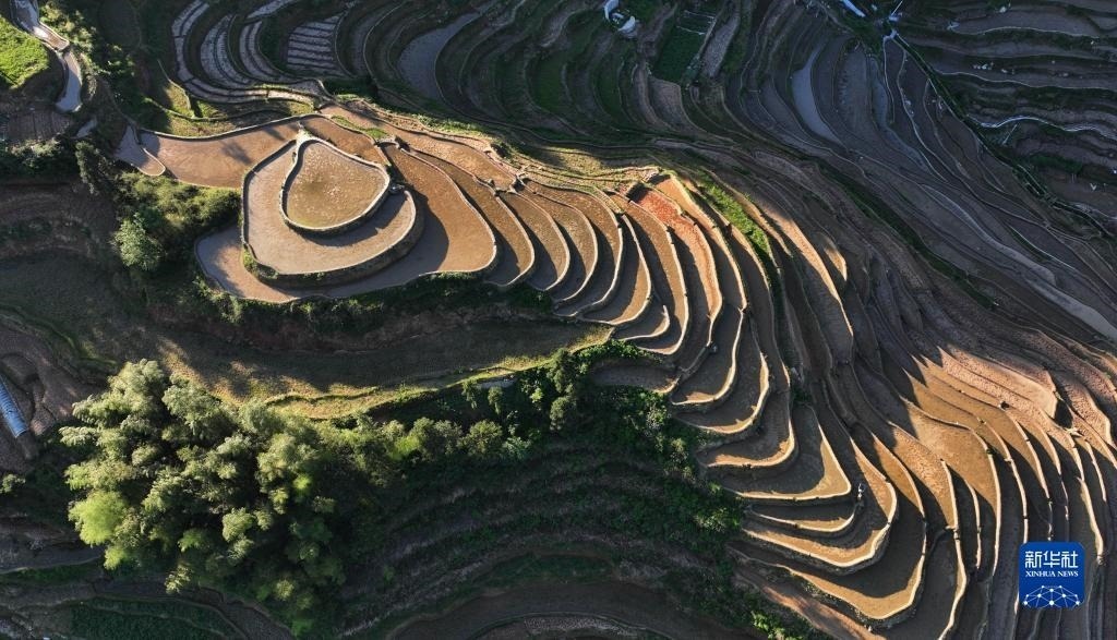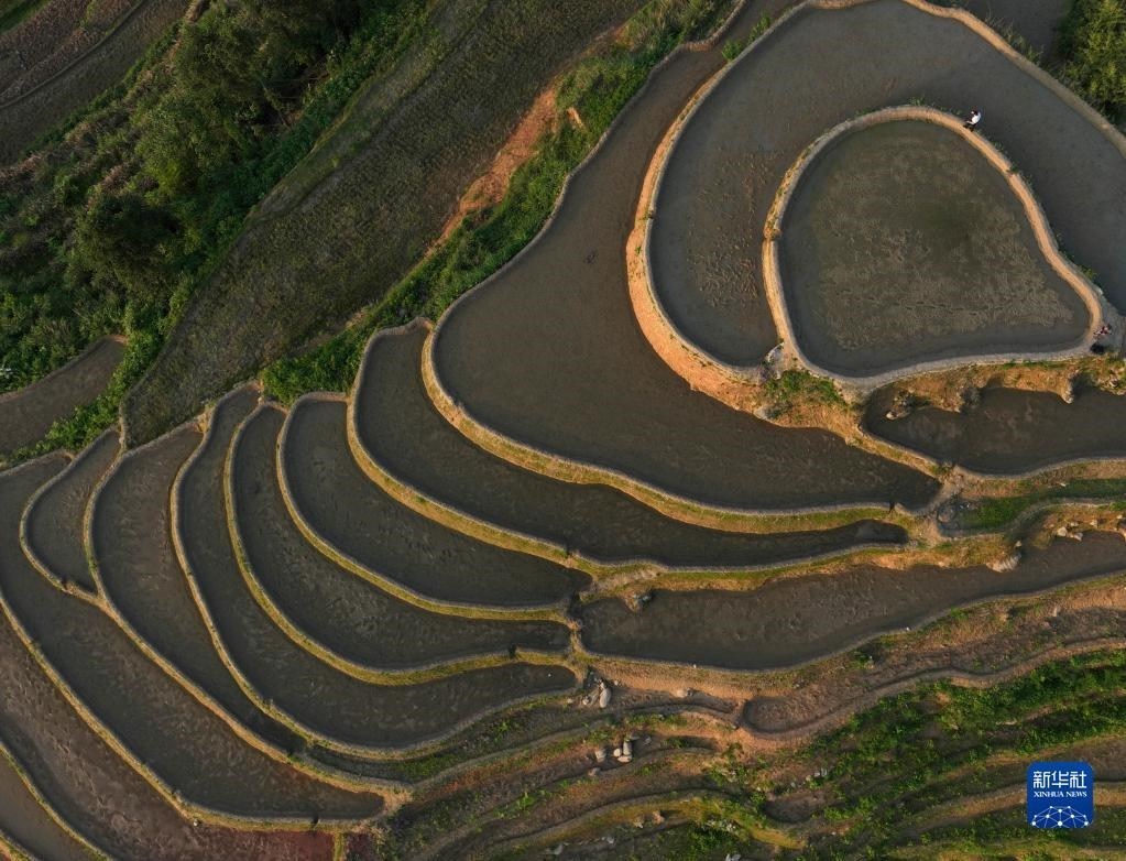 近日,湖南省婁底市新化縣紫鵲界梯田蓄水備耕,水影天光如詩(shī)如畫。新華社記者 趙眾志 攝