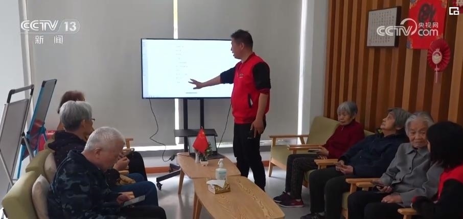 在上海普陀區(qū)長(zhǎng)風(fēng)街道,社區(qū)工作人員正在和外賣平臺(tái)工作人員集體培訓(xùn)老年人用手機(jī)APP的“長(zhǎng)輩模式”來解決點(diǎn)餐、買菜、買藥等日常生活需要。