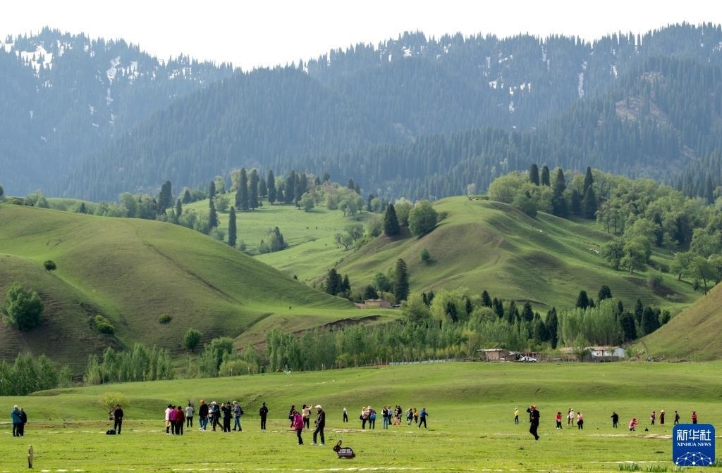 5月19日,游客在位于新疆新源縣的那拉提旅游風(fēng)景區(qū)觀光。
