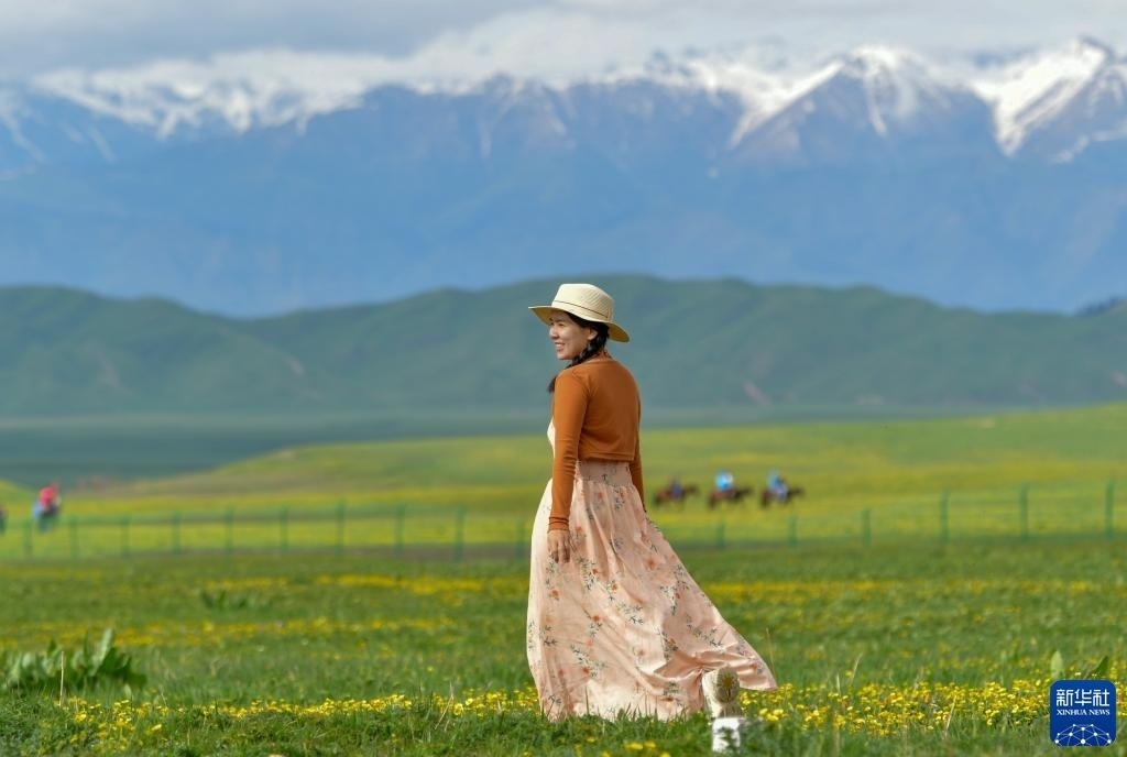 5月19日,游客在位于新疆新源縣的那拉提旅游風(fēng)景區(qū)觀光。   新華社記者 王菲 攝