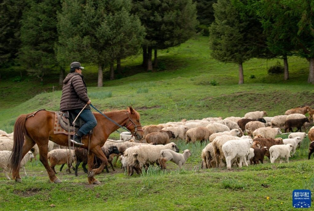 5月20日,在那拉提草原上,牧民在放牧。   新華社記者 王菲 攝