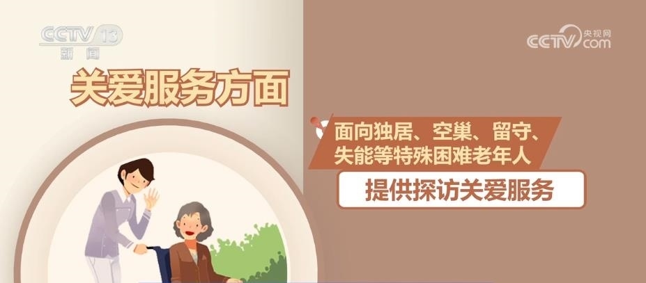 關(guān)愛服務(wù)方面,面向獨(dú)居、空巢、留守、失能等特殊困難老年人提供探訪關(guān)愛服務(wù)。