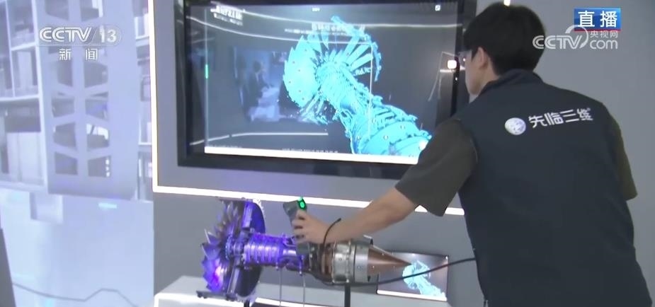 這是一款高精度的手持三維測量設(shè)備,工程師正在測量一款航空發(fā)動(dòng)機(jī)模型的內(nèi)部結(jié)構(gòu),有了尺寸的信息之后,維修就可以根據(jù)內(nèi)部復(fù)雜的結(jié)構(gòu)去設(shè)計(jì)精準(zhǔn)的維修部件。它的難點(diǎn)是要求這款裝備在各種環(huán)境,面對各種材質(zhì)的測量時(shí)候,都能夠保持一致性的精度穩(wěn)定性。像汽車、能源裝備的三維尺寸測量,它都能做到,并且實(shí)現(xiàn)了研發(fā)、生產(chǎn)到普及應(yīng)用。讓不少制造企業(yè),嘗到了數(shù)字設(shè)備帶來的“甜頭”。