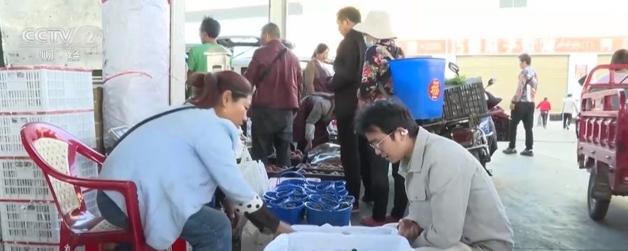 一大早,記者來到云南曲靖的水果批發(fā)市場(chǎng),看到多家藍(lán)莓批發(fā)商生意火熱。攤位上一筐筐大大小小的藍(lán)莓飽滿圓潤(rùn),吸引了不少顧客,賣了多年水果的郭先生告訴記者,目前正是本地藍(lán)莓的豐收季,這些藍(lán)莓將陸續(xù)被稱重、裝車,即將運(yùn)往省內(nèi)外各個(gè)零售門市和商超。