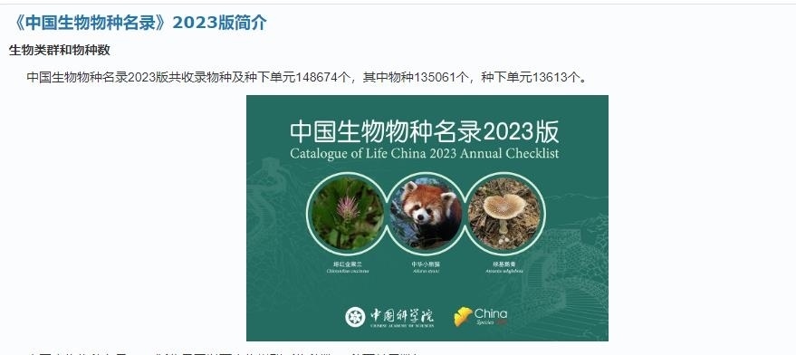 5月22日“國際生物多樣性日”當(dāng)天,中科院生物多樣性委員會在線發(fā)布了《中國生物物種名錄》2023版。據(jù)“物種2000中國節(jié)點(diǎn)”官網(wǎng)介紹,較2022版,2023版名錄新增10027個(gè)物種和354個(gè)種下單元。