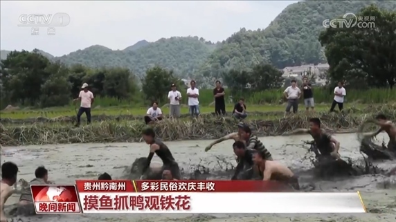 在貴州省長(zhǎng)順縣白云山鎮(zhèn)中院村的荷花池里,當(dāng)?shù)厝罕姾陀慰?0多人一起抓魚,場(chǎng)面熱鬧非凡。與此同時(shí),隔壁廣順鎮(zhèn)核子村的抓鴨子比賽也在熱鬧地舉行。人們顧不上泥漿和水,跟鴨子斗智斗勇,引得觀眾陣陣歡笑。