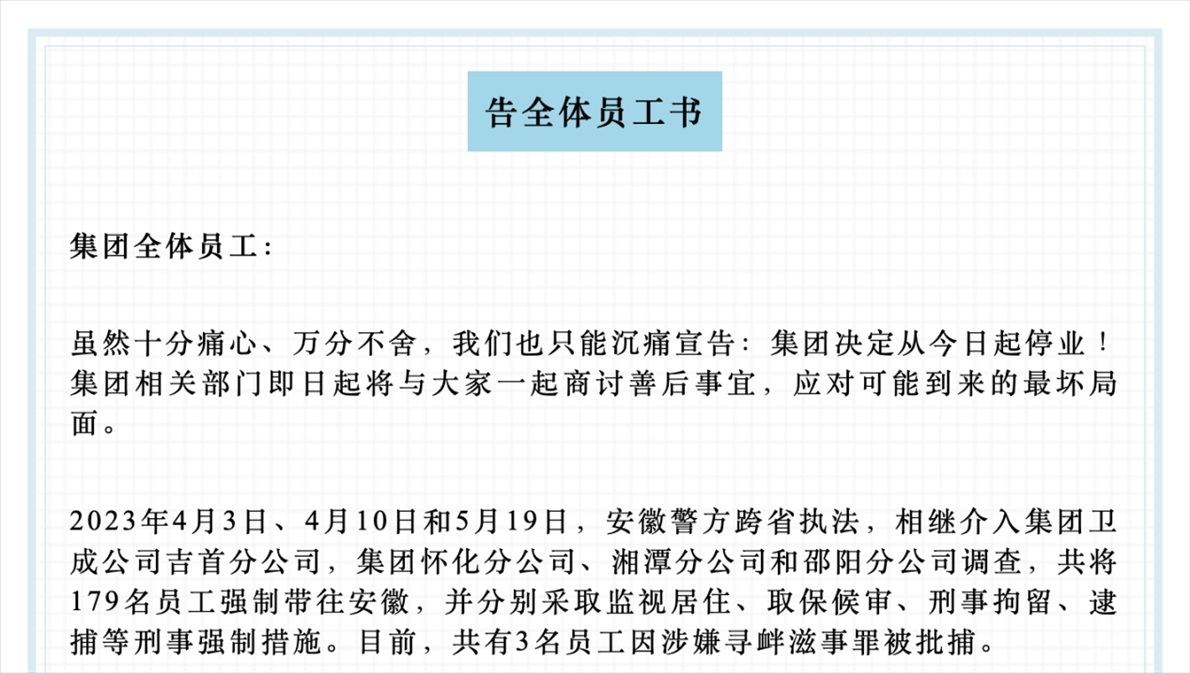 ·“催收巨頭”湖南永雄發(fā)布停業(yè)消息后又撤回,自稱179名員工被采取刑事強制措施。警方回應(yīng):該案件正在進(jìn)一步偵辦中。