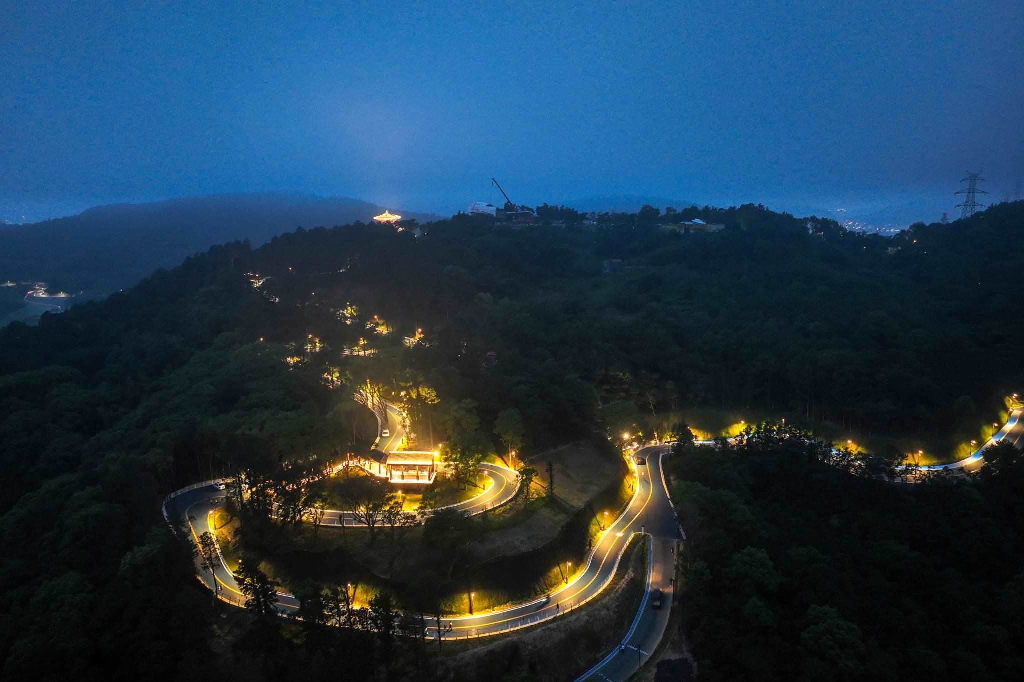 2023年5月26日,浙江舟山,定海區(qū)東海云廊的便道燈準(zhǔn)時亮起,使這條青山疊翠、美麗磅礴的東海云廊更為靚麗,似蛟龍遨游在蒼翠間。