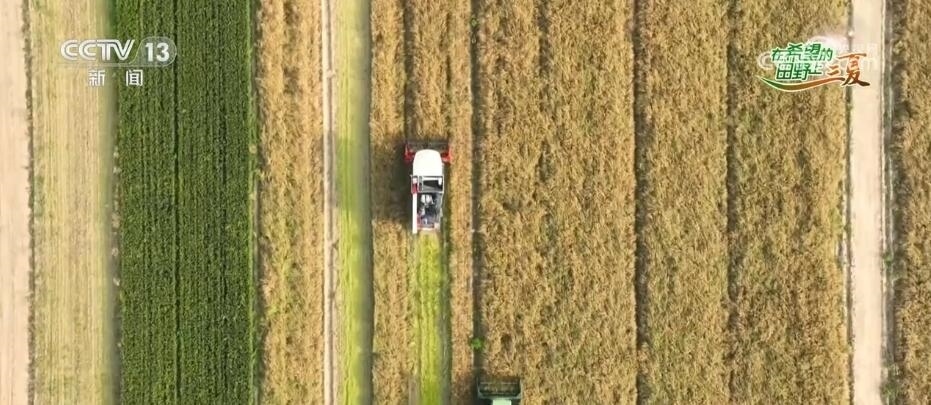 總臺記者 楊海靈:我現(xiàn)在來到了衡水市安平縣,在經(jīng)歷了油菜花明艷的金黃之后,整個田地披上了一層淡淡的黃色。從芳香變?yōu)楣麑?,這里的萬畝油菜籽迎來大面積收獲。很多人見過油菜花,對于油菜籽可能并不熟悉。我手里拿的就是正在收獲的油菜籽,顆粒就在這細(xì)長的豆莢當(dāng)中。農(nóng)民們豐收的喜悅就在這一鼓作氣的干勁里,趁著天氣晴好,聯(lián)合收割機(jī)來回穿梭,飽滿的油菜豆莢連著秸稈被收進(jìn)機(jī)器,很快,細(xì)細(xì)密密的油菜籽就被收入機(jī)囊當(dāng)中。
