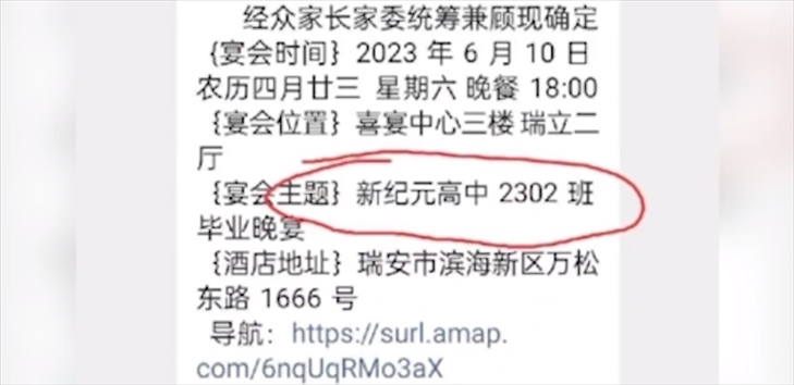 ·溫州一高中高額收費(fèi)組織畢業(yè)晚宴?校方回應(yīng):系家長(zhǎng)私自組織,任課教師不知情且未參與。