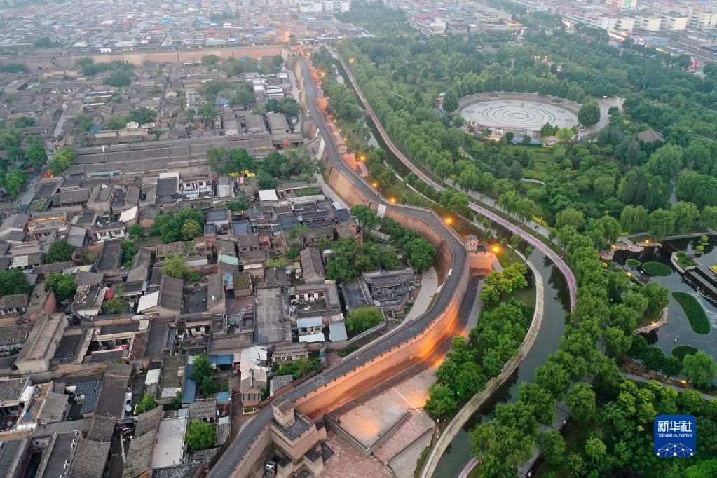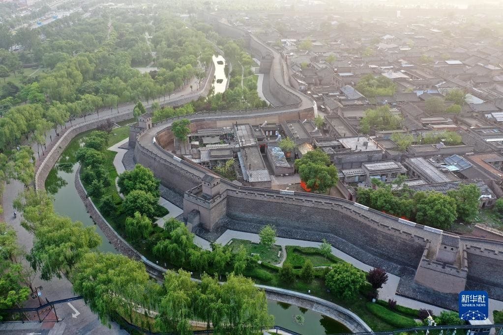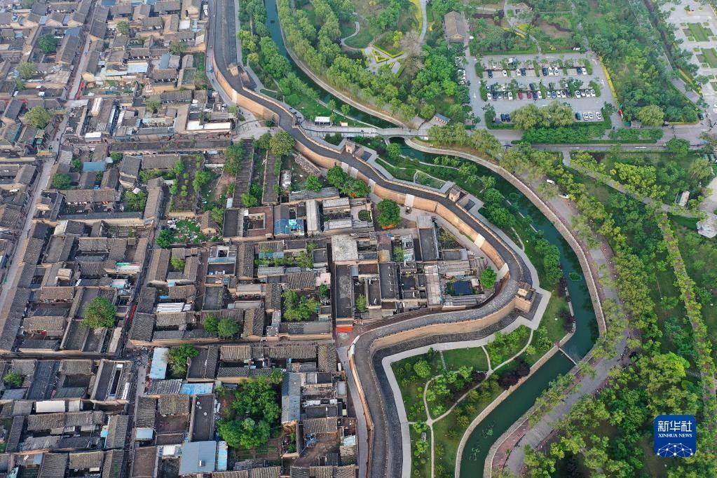 平遙古城一角(5月30日攝,無(wú)人機(jī)照片)。