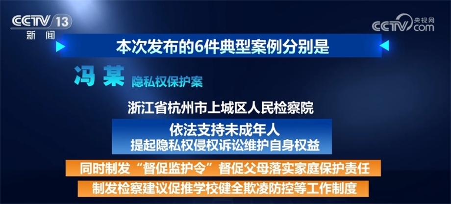 發(fā)布會(huì)上,最高檢還聯(lián)合國(guó)家網(wǎng)信辦、國(guó)務(wù)院婦兒工委,發(fā)布了6件網(wǎng)絡(luò)保護(hù)典型案例,為各地檢察機(jī)關(guān)對(duì)辦理同類問(wèn)題提供案例指導(dǎo)和規(guī)則指引。