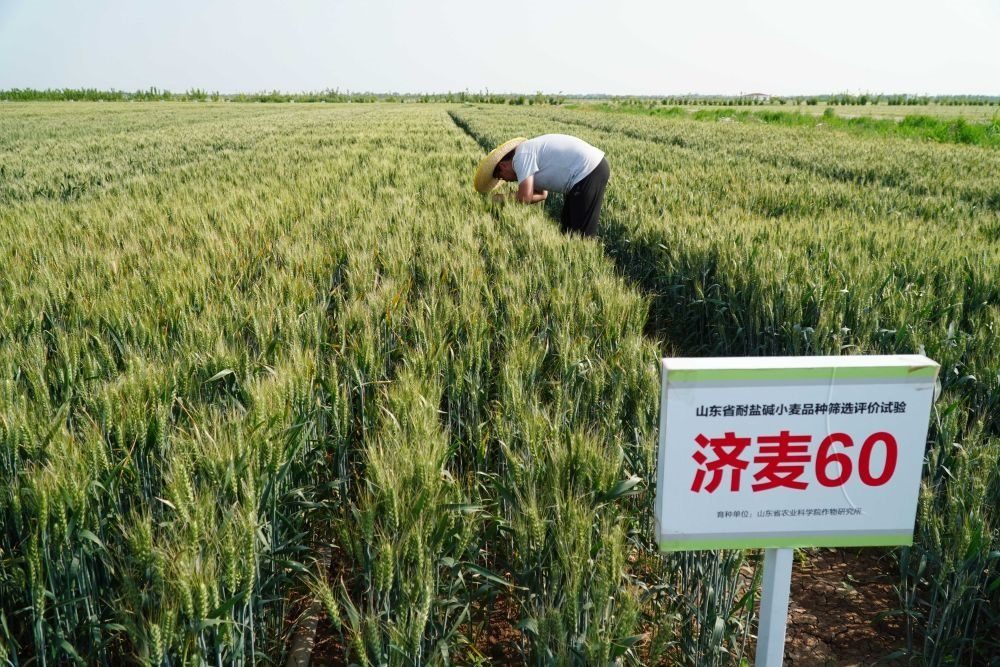 黃河三角洲80%以上的土地是鹽堿地,這樣的土地同樣長出了“金麥穗”。在黃河三角洲農(nóng)業(yè)高新技術(shù)產(chǎn)業(yè)示范區(qū),約1畝標有“濟麥60”的麥田已開始由青綠轉(zhuǎn)向金黃。
