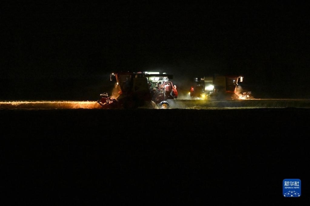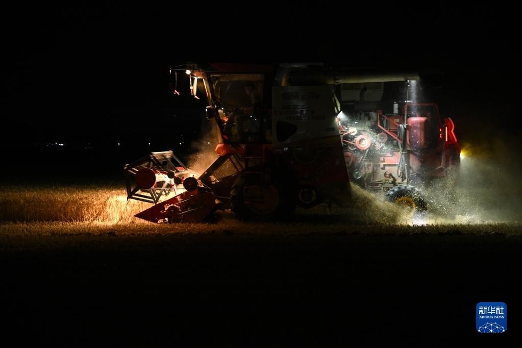 據(jù)氣象部門預(yù)報,6月3日夜間至5日,夏糧主產(chǎn)省安徽將迎來一次降水過程。當前正值安徽省小麥搶收關(guān)鍵時期,不少地方挑燈夜戰(zhàn)搶收小麥,力保小麥顆粒歸倉。記者從安徽省農(nóng)業(yè)農(nóng)村廳了解到,截至6月2日,安徽已收獲小麥面積1632.1萬畝,麥收進度為38%。新華社記者 黃博涵 攝
