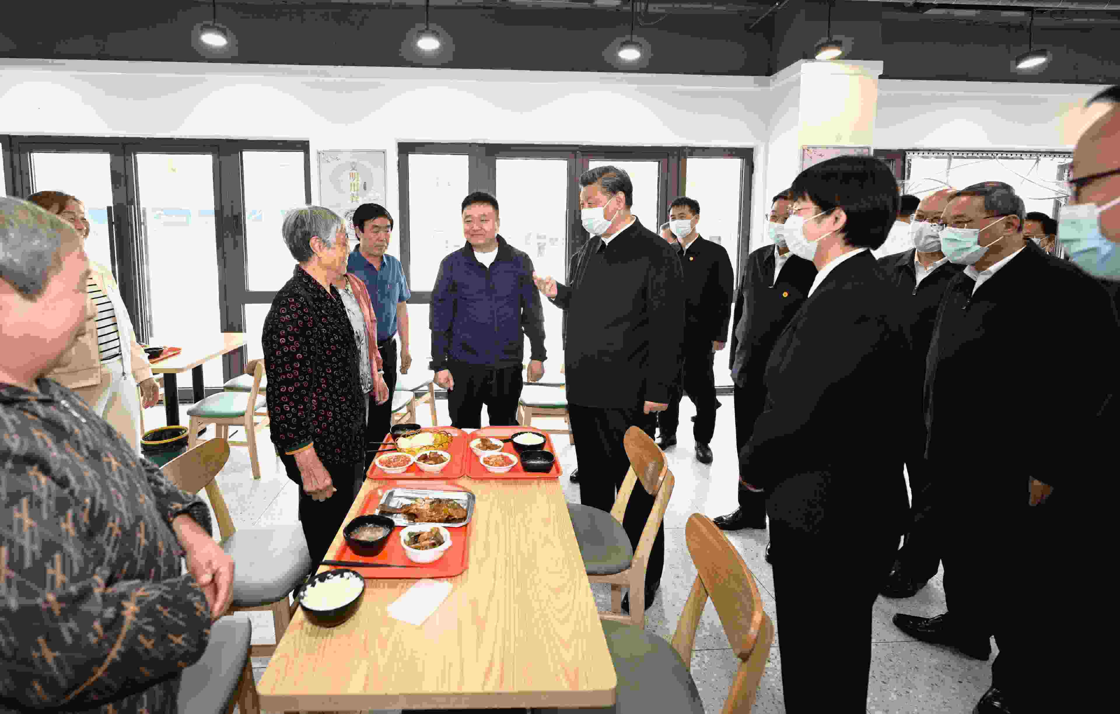 △5月10日,習(xí)近平總書記在河北省雄安新區(qū)考察,并主持召開高標(biāo)準(zhǔn)高質(zhì)量推進(jìn)雄安新區(qū)建設(shè)座談會(huì)。這是10日上午,習(xí)近平在容東片區(qū)南文營(yíng)社區(qū)食堂同就餐的社區(qū)老人親切交流。