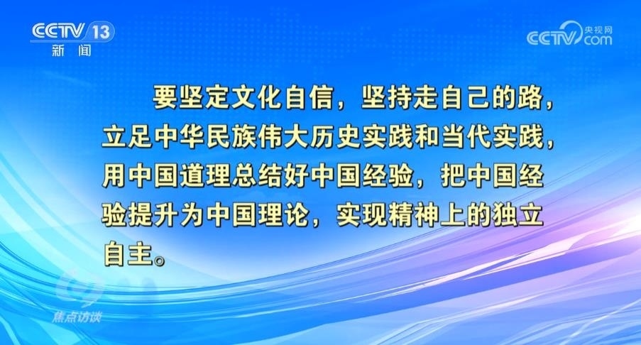 腳踏必由之路,譜寫時代華章。在新的歷史起點(diǎn)上,我們應(yīng)當(dāng)如何擔(dān)當(dāng)起新的文化使命,如何繼續(xù)推動文化繁榮、建設(shè)文化強(qiáng)國、建設(shè)中華民族現(xiàn)代文明?習(xí)近平總書記提出了三點(diǎn)具體要求,要堅定文化自信,堅持走自己的路,立足中華民族偉大歷史實(shí)踐和當(dāng)代實(shí)踐,用中國道理總結(jié)好中國經(jīng)驗(yàn),把中國經(jīng)驗(yàn)提升為中國理論,實(shí)現(xiàn)精神上的獨(dú)立自主。要秉持開放包容,堅持馬克思主義中國化時代化,傳承發(fā)展中華優(yōu)秀傳統(tǒng)文化,促進(jìn)外來文化本土化,不斷培育和創(chuàng)造新時代中國特色社會主義文化。要堅持守正創(chuàng)新,以守正創(chuàng)新的正氣和銳氣,賡續(xù)歷史文脈、譜寫當(dāng)代華章。