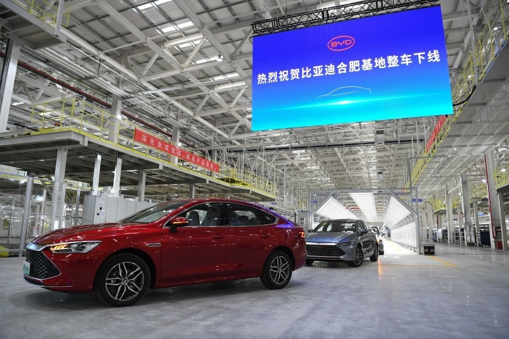 2022年6月30日,比亞迪合肥基地項(xiàng)目整車下線儀式在安徽省合肥市長(zhǎng)豐縣下塘鎮(zhèn)舉行。新華社記者 張端 攝