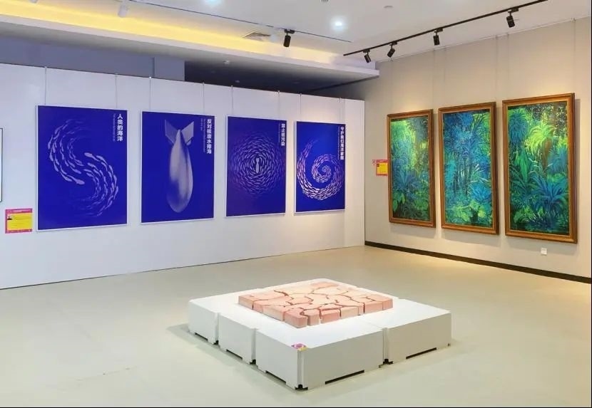 本次展覽以油畫、版畫、國畫、影像、雕塑、裝置藝術(shù)以及創(chuàng)新設(shè)計(jì)等多種形式,回應(yīng)著藝術(shù)家們對(duì)于“生態(tài)流變”這一意象與內(nèi)涵的理解,以及對(duì)“環(huán)境共生”這一問題的思考與探索。