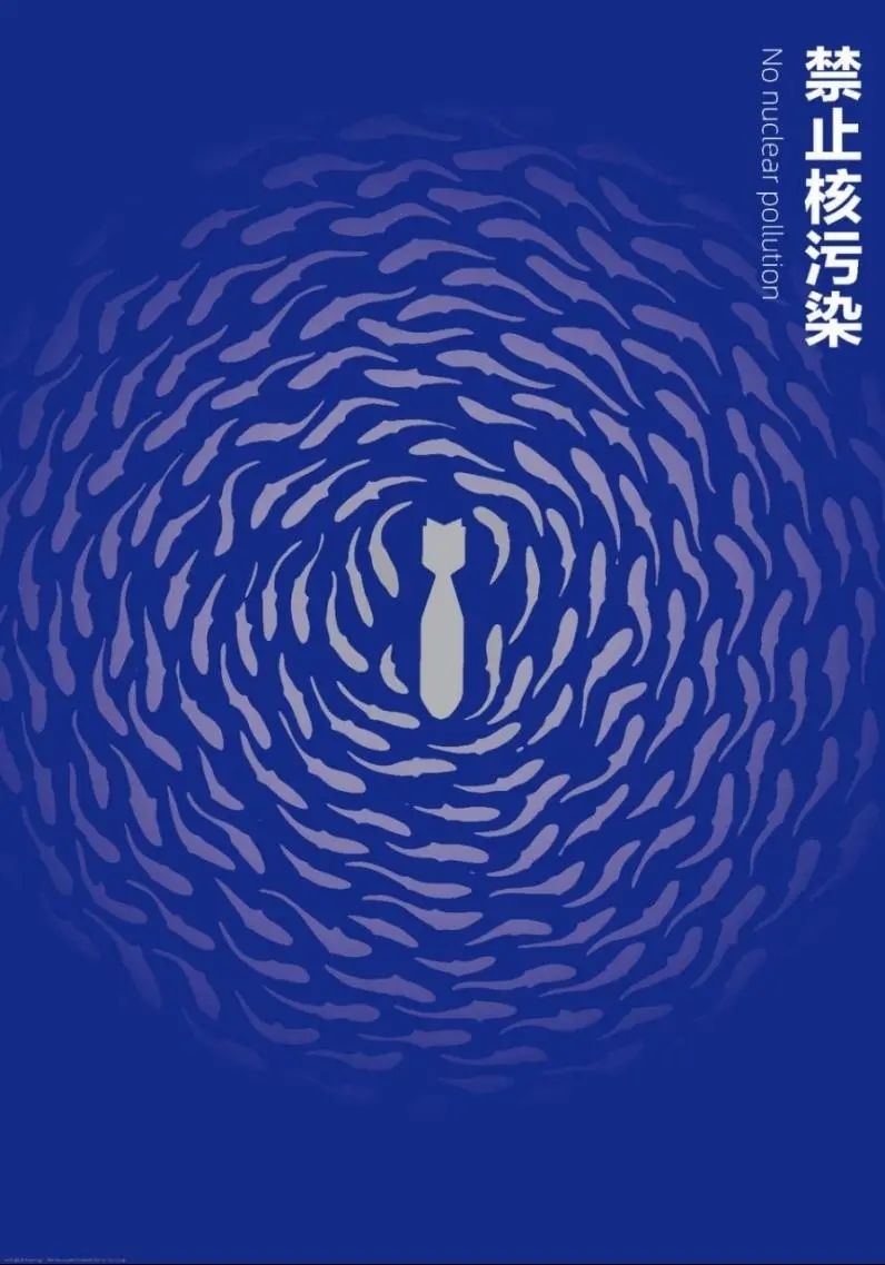 《禁止核污染》以爆炸的核彈呈現(xiàn)的煙霧為視覺形象載體,將煙霧元素進(jìn)行提取簡化,加強(qiáng)設(shè)計(jì)語言。寓意核污染對(duì)生態(tài)環(huán)境的破壞,呼吁環(huán)境共生的主旨。