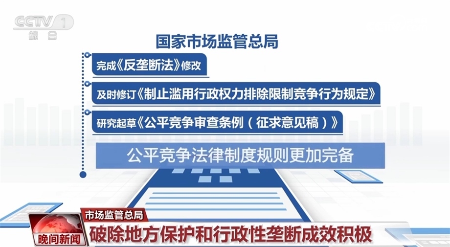 在破除地方保護和行政性壟斷方面,國家市場監(jiān)督管理總局相關負責人表示,市場監(jiān)管總局完成了《反壟斷法》修改,及時修訂《制止濫用行政權力排除限制競爭行為規(guī)定》,研究起草了《公平競爭審查條例(征求意見稿)》,公平競爭法律制度規(guī)則更加完備。
