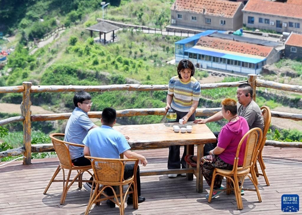 6月5日,游客在靈山島省級自然保護(hù)區(qū)一民宿飲茶休閑。