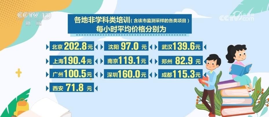 各地非學(xué)科類培訓(xùn)(含該市監(jiān)測采樣的各類項(xiàng)目)每小時平均價格分別為:北京202.8元、沈陽97.0元、武漢139.6元、上海190.4元、南京119.1元、鄭州82.9元、廣州100.5元、深圳160.0元、成都115.3元、西安71.8元;與上月相比,北京上漲1.0%、沈陽上漲0.8%、武漢下降1.2%,其他城市價格保持不變。