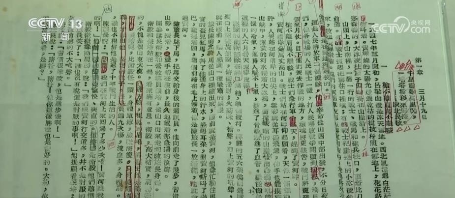 展臺(tái)里這份《紅巖》手稿上,作者和編輯密密麻麻的修改痕跡,無(wú)論是章節(jié)的移動(dòng)和調(diào)整,還是用詞的字斟句酌,每一處標(biāo)點(diǎn)的修改加工,都能體現(xiàn)創(chuàng)作者的智慧和嚴(yán)謹(jǐn)。