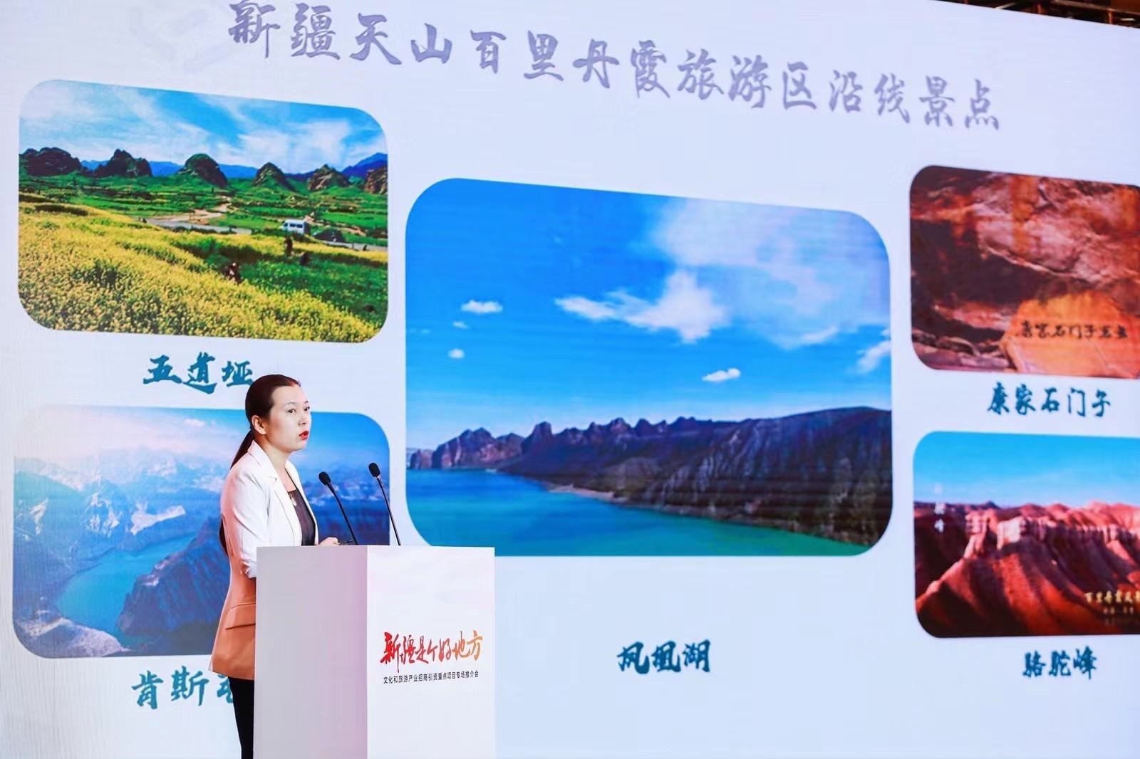 推介會上,共有世界文化遺產(chǎn)龜茲文化數(shù)字化發(fā)展與應(yīng)用項目、天山龍脊旅游度假區(qū)項目、獨山子紅色工業(yè)旅游項目、新疆江布拉克景區(qū)產(chǎn)業(yè)提升項目、新疆天山百里丹霞旅游區(qū)項目、策勒縣昆侖山景區(qū)旅游業(yè)態(tài)開發(fā)項目等6個投資潛力好、投資規(guī)模大、帶動能力強的文化和旅游產(chǎn)業(yè)項目,由推介代表依次在會上進行宣傳推介,為新疆文化和旅游產(chǎn)業(yè)高質(zhì)量發(fā)展打開新局面,注入新動能。