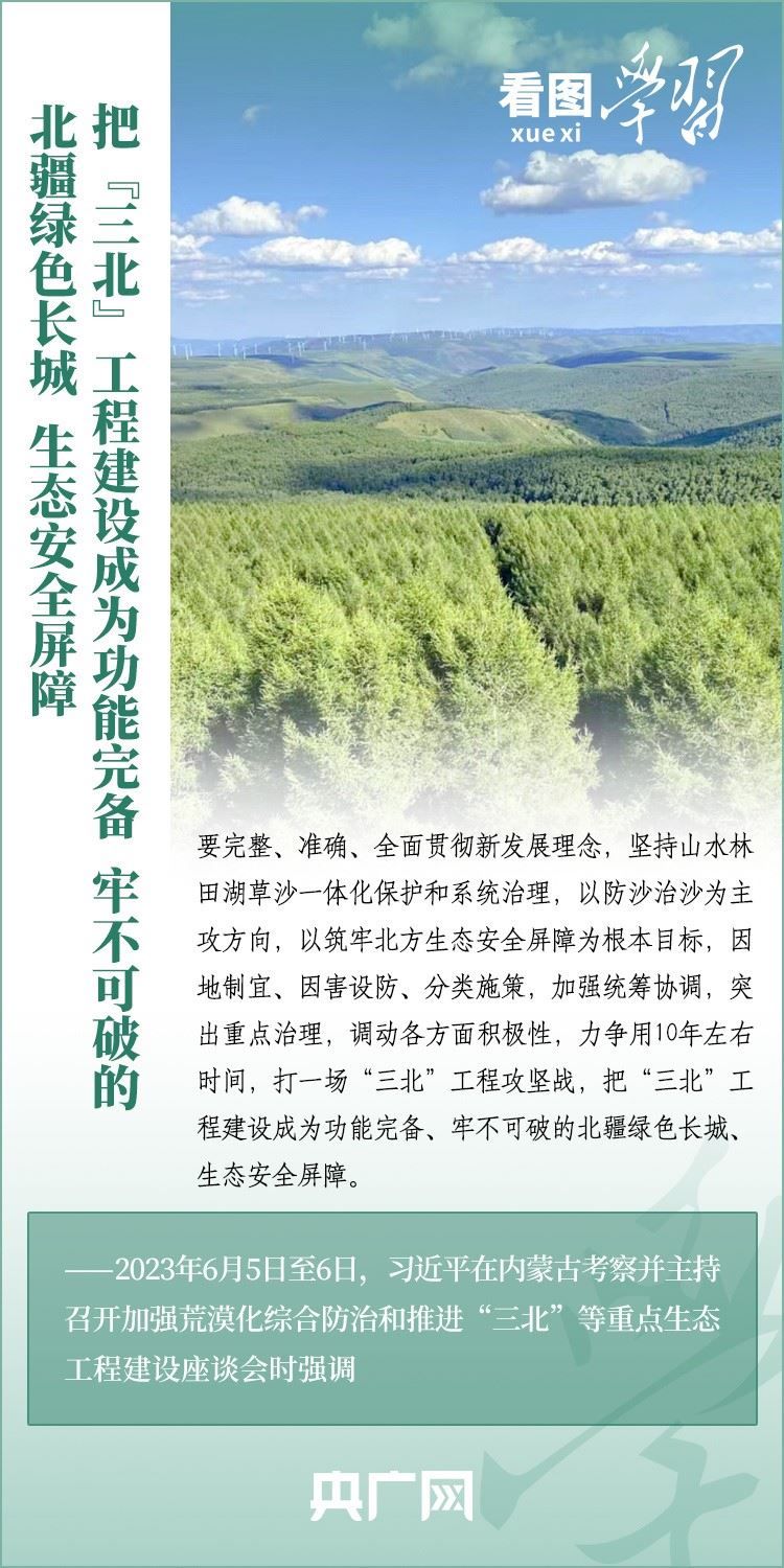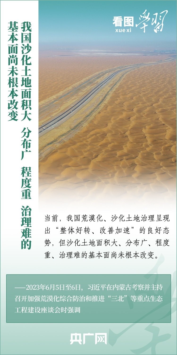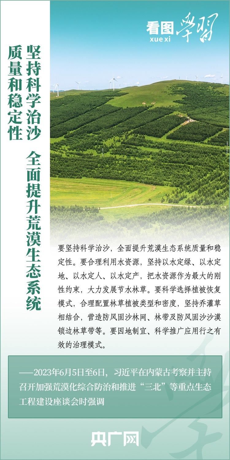 6月5日至6日,習(xí)近平總書記來到內(nèi)蒙古自治區(qū)巴彥淖爾市,深入自然保護(hù)區(qū)、現(xiàn)代農(nóng)業(yè)示范園區(qū)、林場、水利部門等考察調(diào)研,主持召開加強(qiáng)荒漠化綜合防治和推進(jìn)“三北”等重點生態(tài)工程建設(shè)座談會并發(fā)表重要講話。總書記強(qiáng)調(diào),要勇?lián)姑?、不畏艱辛、久久為功,努力創(chuàng)造新時代中國防沙治沙新奇跡,把祖國北疆這道萬里綠色屏障構(gòu)筑得更加牢固,在建設(shè)美麗中國上取得更大成就。一起來學(xué)習(xí)!